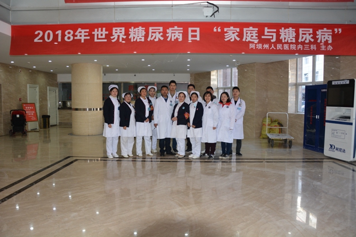 11月14日是世界糖尿病日,今年的主题是“家庭与糖尿病”,旨在关注家庭在糖尿病预防、管理和照顾方面的重要作用。为呼吁广大群众及其家属重视糖尿病的防治,阿坝州人民医院内三科以“践行十九大 共创健康四川”为主题,于2018年11月14日在阿坝州人民医院举行了“世界糖尿病日”义诊活动。