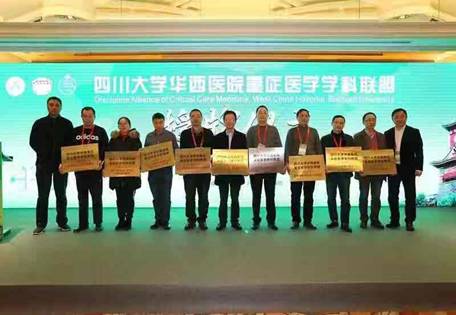 联盟成立大会上,我院重症医学科作为联盟成员单位,重症医学科主任张泽奎(左五)代表阿坝州人民医院重症医学科上台接受了四川大学华西医院重症医学学科联盟成员单位的授牌。