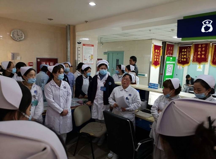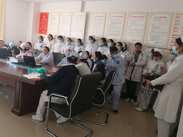 2019年1月17日下午15点, 在州人民医院内一科护士站,由护士长路懋英主持,杨帆主讲脑梗塞理论知识,汇报病史及给予的护理措施,护理部副主任罗老师及第二届、第三届规培护士,实习生和科室全体护士参加,主讲护士杨帆报告病人情况,重点讲解该病员各时期的护理问题及给予的护理措施。主讲护士杨帆与患者家属解释病情以及护理查房的目的并取得家属及病人的同意及配合。在病人的配合下,完成查体和汇报病史,通过查房提高护士专科理论知识,提高护理质量,激发护士学习主动性,同时使护士了解查体流程。