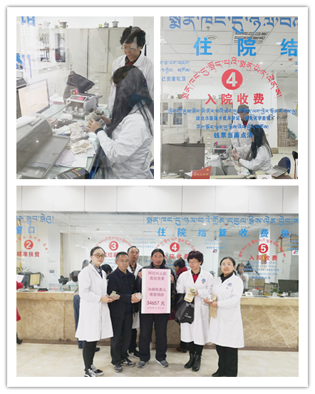 通过义诊义捐现场和微信朋友圈义捐共收到了34576元捐款。11月5日下午,主管医生文家智陪同患儿的爷爷,在胡林副院长和党办主任的监督下将全部捐款交到医院用于患儿的专项治疗。