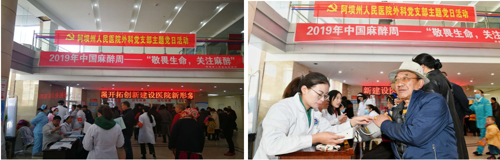 党员和医护人员践行为人民服务的宗旨,通过为期一周的活动,在义诊、麻醉科普宣传中唤起了各族群众对麻醉的关注并在日常医疗活动中不断满足广大群众对无痛、舒适化医疗的需求。