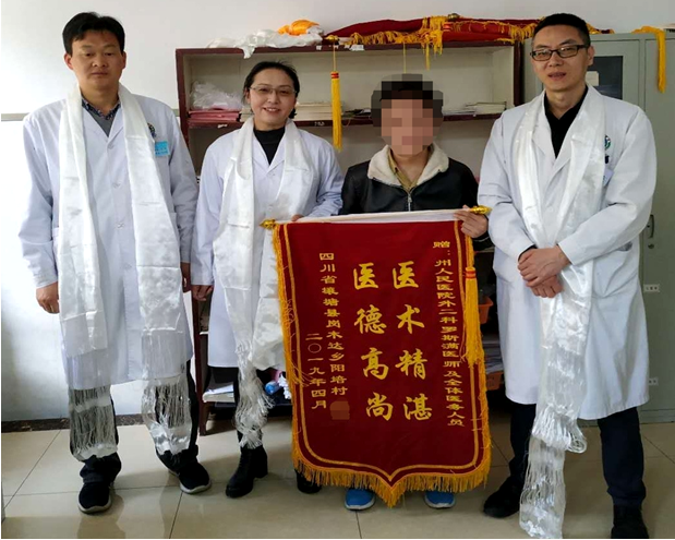术后,患者无胆瘘、肝功能衰竭等并发症,现已好转出院,手术效果良好,出院时赠送锦旗,感激医护人员的精心救治。州人民医院肝胆外科在科主任喻定刚主任医师的带领下,不断缩小与内地三甲医院差距,精益求精,勇攀肝脏外科高峰,近年来开展了精确解剖性肝切除,能完成左三叶、右三叶、肝中叶、左半肝、右半肝切除等高难度肝脏手术,努力为州内肝包虫患者谋福音。随着国内外医疗技术的进步,目前国内外肝叶切除术以解剖性切除为主,提高治疗率、降低并发症,是三甲医院必备的手术方式,阿坝州人民医院现亦开展了此术式,标志着我州人民医院肝胆外科技术水平达到国内先进水平。
