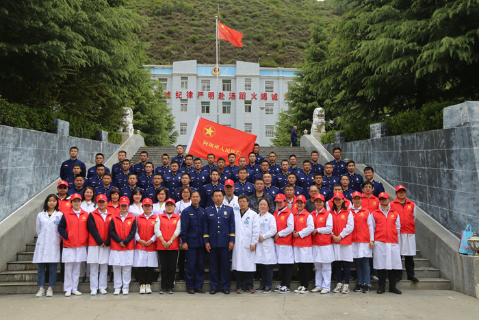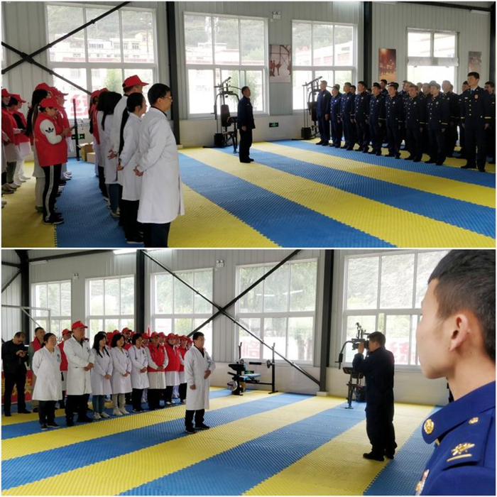 在“五四”青年节这个属于他们的日子里,为了过一个特殊而有意义的节日,医院团委组织开展了系列活动。2019年5月5日我院30多位青年职工及来自四川省人民医院的3位青年专家到阿坝州森林消防支队开展义诊活动。活动开始前,杨林副院长作了讲话,他指出森林消防官兵为了人民的生命财产安全不顾个人安危奋不顾身,是时代的楷模,是新时代最可爱的人,医务人员为森林消防官兵提供医疗服务既是我们的职责义务也是我们的荣幸。