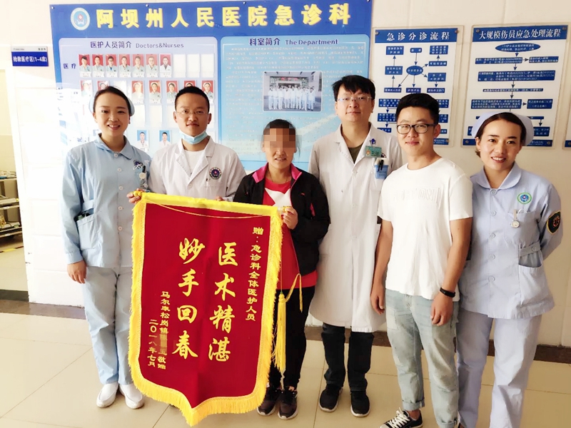 如今患者陈翠玉已经完全康复,8月20日上午,科室迎来了陈翠玉的女儿,专程送上一面锦旗表示感谢,她感激地握着医生的手说:“感谢您们给了我妈妈第二次生命,也挽救了我们这个家”。