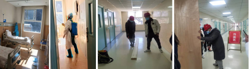 患者转运结束后,总务科对病房有关设备、生活物资进行清理,并转运到物资仓库,及时组织人员按《阿坝州人民医院定点医院改造方案》对病房进行终末消毒,启动病区改造。