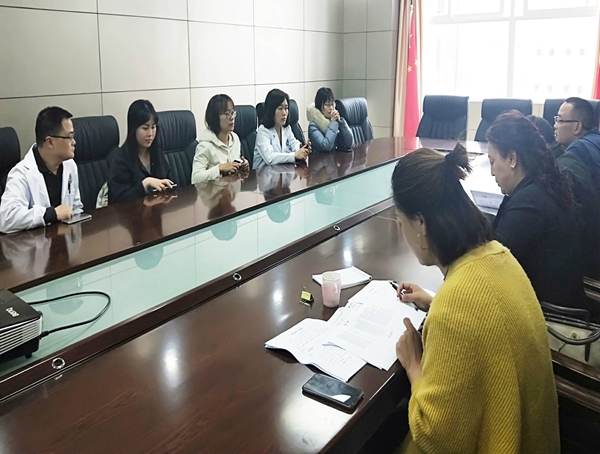 支援人员队长许海东首先发言,就许医生在急诊科对急救流程管理、急腹症的现场评估、突发事件的现场救援等培训工作进行了汇报。全科医生王佳阐述了对新开设全科病房的指导工作、引入新的教学模式以及对乡村医生的全科转岗培训工作。刘柳医生汇报了开设疼痛门诊,一对一的指导疼痛科的各种技能操作,开展了CT引导下经椎间孔硬膜外阻滞新技术。康复科医生付婧就细化康复评定项目以及采用讲课示教等方式落实培养社区康复人才,普及社区康复服务进行了汇报。血液科车菲菲医生指导了内科医生处理如贫血、血小板减少、凝血功能障碍等基础血液系统疾病,同时承担了全院血液系统相关疾病的会诊任务。