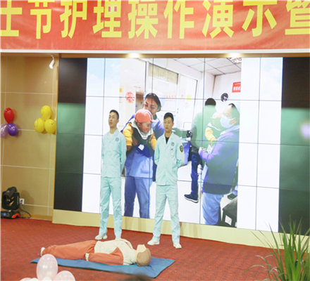 规培护士进行操作演示:双人CPR、穿脱隔离衣、静脉采血操作演示。展示护士用精湛的技术和敏锐的观察力配合医生挽救患者的生命,在危机的情况下争分夺秒,汗流浃背地为患者创造生的希望,他们用规范的操作捍卫生命的尊严。