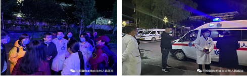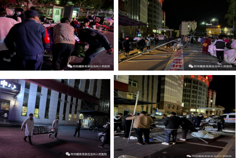 阿坝州人民医院第一时间启动应急预案,院领导迅速做出应急工作安排部署,党员干部纷纷以身作则,发挥党员先锋模范作用,冲在第一线,做好应急救援准备。院党委书记潘华作为前锋队伍于01时08分奔赴震中。