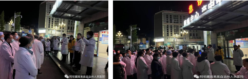 03时07分,副院长杨林组织召开院内应急会,副院长刘义芳、副院长刘志红听取各科室在地震应急处置中存在的问题,医务科科长蒲光军报告了地震后院内处置的相关情况。