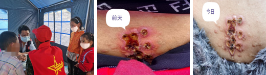 6月14日,按照指挥部统一安排,医疗队在震中科拉机村、呷秋里村和代基村建立了帐篷医疗点,方便灾区群众看病。6月14日诊疗78人次,健康宣教200余人次,发放药品约2200余元。其中1例患者因腰痛艾灸致皮肤感染,红肿明显,在6月12日对症治疗后,14日回访,患者炎症情况较前明显好转,继续对症治疗。