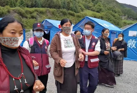 6月14日18时11分再次4.4级地震,震中震感强烈。1位受灾群众在安置点突发头昏、呼吸气促并意识丧失,村干部立即与医疗队联系,队员们不惧余震、不畏飞石,立即赶往呷秋里安置点救援,经检查确诊该受灾群众为突发单纯性晕厥,医疗队员给予他对症治疗和心理疏导后逐渐恢复正常。