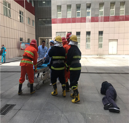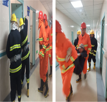 随后在住院部4楼综合科进行了应急疏散演练,演练中院领导和医院职工全程参与,随着演练总指挥的一声“演练开始”,演练活动拉开了序幕。综合科全体医护人员、保洁人员、本院全体保安人员按照应急疏散演练预案内容各司其职,灭火组、疏散组、救援组,纷纷展开行动,救援组对被困人员进行救助,疏散组有序的疏散被困人员,逃生人员用湿毛巾捂住口鼻、弯下腰,井然有序的沿着安全通道紧急疏散,迅速撤离到安全场地。医疗组随即对受伤人员进行救助,演练顺利完成。