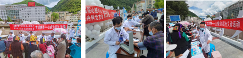 2022年6月10日00时03分09分,马尔康市发生6.1级地震,社会各界广泛关注并纷纷伸出援手,前来州人民医院的心血管疾病专家们也心系群众,2022年6月17日下午,由成都市第三人民医院心脏中心党支部联合阿坝州人民医院内科党支部在马尔康市开展义诊活动,专家们为广大群众免费测量血压,提供心血管疾病诊疗咨询等服务。