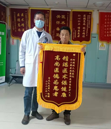 外二科患者痊愈出院赠送锦旗感谢医护