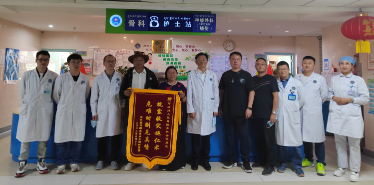 神经外科患者痊愈出院赠送锦旗感谢医护