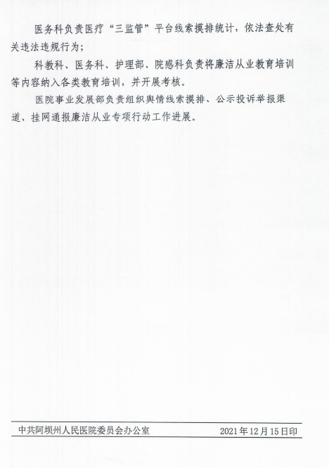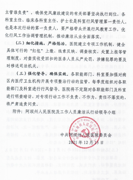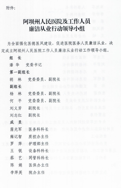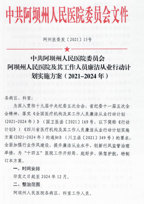 阿坝州人民医院及其工作人员廉洁从业计划实施方案