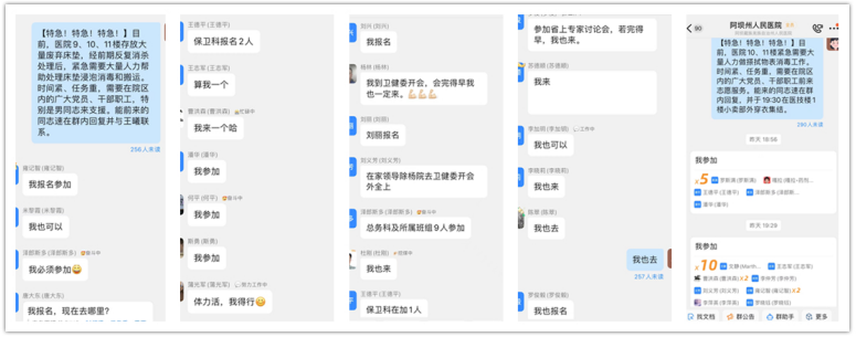 该区域病区包含四个楼层,累计存放200余张床垫和各种库存物品,需要清洁消毒的环境物表面积广泛。时间紧、任务重、人力严重不足,单靠院感科和总务科的力量无法完成彻底消杀工作。9月14日18时27分、9月18日18时53分,医院发出招募志愿者的紧急通知。