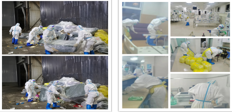 经过2个多小时高强度体力劳动,大家完成了两个楼层清运,一些同志的防护服及N95口罩已被汗水浸湿,那一刻同志们没有中途离开,而是重新换上防护装备继续进入污染区域工作。