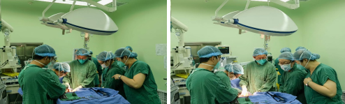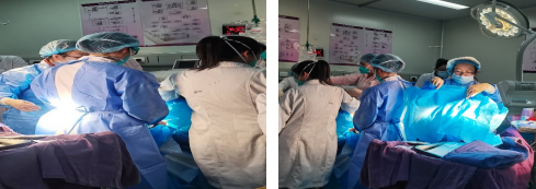 更严重的问题随之而来,胎儿娩出后,孕妇胎盘无明显剥离征象,超声显示胎盘大部分位于子宫前壁及宫底,胎盘与子宫分界不明显,必须要让胎盘尽快剥离才能保证该产妇的安全,因该产妇胎盘大面积植入,在本院所实践的手术史中属于难度极大的手术。情况危急,在省医院专家何海宁老师指导和州医院医护密切配合下成功完成了该剖腹取胎盘手术。