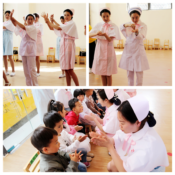 洗手对于小朋友们来说是相当重要,可以预防疾病的同时也促进健康成长发育,由医院南丁格尔服务队的护士姐姐们为小朋友们演绎了精彩的“洗手舞”,外科党支部书记王曦和麻醉科护士马如梅给小朋友们演示七步洗手,护士姐姐们还一对一教小朋友做七步洗手,启蒙星的小朋友们学的特别认真……