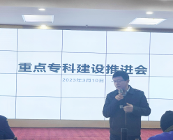 医务科科长蒲光军介绍了我院重点专科建设现状,详细解读重点专科建设的目标、任务、实施步骤。为保障重点专科建设工作的稳定推进,对下一步工作提出以下要求:一是各学科带领人要提升科学化、精细化管理水平,结合实际制定切实可行的量化指标和实施方案;二是确定专科建设期间人才培养、专人负责、保障工作有序开展;三是根据专项经费额度做好经费预算,合理、规范使用专项经费;四是各职能科室做好相关支持工作、全力配合重点专科建设工作。