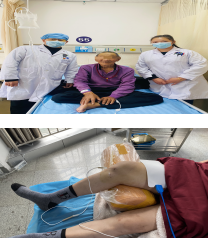 例4, 患者陈某,男性,77岁,因“双膝疼痛3+年加重4月“入院。NRS评分:5分。诊断为:双膝骨关节炎。经过两次双膝关节阻滞+射频治疗,NRS评分:1分,带药出院后未再复诊。
