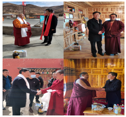 在上杜柯乡鱼托寺、岗木达镇扎西曲林寺、南木达三郎寺、康旭寺、中壤塘镇藏洼等寺,潘华一行走入结对户堪布班玛果等6户家中,与他们亲切地交谈交流,详细了解寺庙建设、僧人管理、家庭收入等情况并送去牛奶、油等慰问品。表示僧人要守法持戒、精进修学,要加强国家政策的学习,积极引导广大信教群众听党话、感党恩、跟党走,努力做一名“政治上靠得住、宗教上有造诣、品德上能服众、关键时起作用”的爱国爱教宗的教界人士。