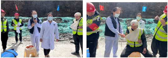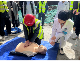 为切实落实 “我为群众办实事、办好事、办身边事”主题实践活动,2023年4月15日阿坝州人民医院外科第二党支部开展了 “急救科普进工地 助力施工安全生产”的主题党日活动,阿坝州人民医院党委委员、副院长何平、急诊科医师苟晓慧、支部组织纪检委员、急诊科主管护师王丹、120驾驶班泽肯走进中铁五局雪马山项目工地,开展急救科普知识宣讲和技能培训,旨在丰富工人的急救知识储备,提升危急时刻应急能力。