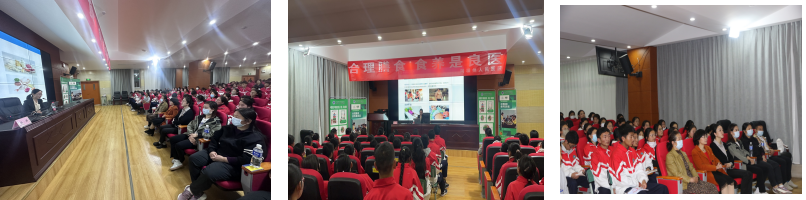 胡燕主任在讲授过程中,利用生动形象、图文并茂的形式,结合本地区学生们的生活习俗深入浅出地为广大师生们阐述了营养膳食相关知识等,引导学生们养成均衡营养、科学运动的习惯。