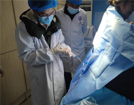同时,随行的专家对县医院一位住院肝脓肿病人进行了现场查房、病例讨论,并实施床旁B超定位下肝脓肿穿刺引流术,使壤塘县人民医院的临床医生接受了现场的、手把手的、实践临床的学习机会。