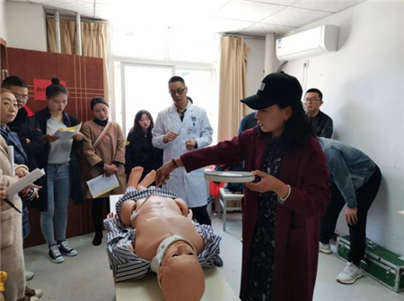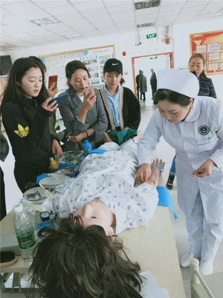护理组由尚小燕护师、王芳护师进行教学,内容包括:吸氧术、吸痰术、胃管置入术、导尿术、静脉输液/采血术、心肺复苏、穿脱隔离衣。
