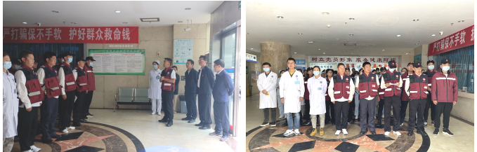 院内,急诊科立即做好分工,保卫科、总务科按照现场指挥官安排,立即完成分区、车辆疏散等后勤保障工作。此时10名伤员自行来院,急诊科和待命的应急救援队队员立即各司其职,进行二次检伤分类、组织诊疗、心理干预和信息报送等工作。期间,模拟一轻伤患者突发胸痛、胸闷,绿区医务人员立即呼叫急诊科、心血管内科启动胸痛患者绿色通道,10分钟内患者已转运至导管室进行介入治疗。