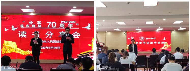 根据《关于开展庆祝建州70周年系列主题党建活动的通知》文件要求,为热烈庆祝阿坝州建州70周年,2023年8月30日我院党委在医技楼8楼会议室组织开展了“分享•我和阿坝 70 年”读书分享会活动。