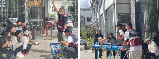急诊科、呼吸内科、心内科、高压氧舱、四川(阿坝)高原卫生应急救援队、医务科、护理部、科教科、总务科、保卫科等相关科室和实习生等60余人参加演练及观摩。阿坝州卫健委应急办钱晓强科长,阿坝州人民医院党委书记潘华、院长杨林全程观摩指导。