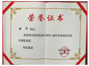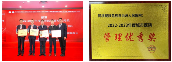 2023年12月9日,在四川省医院协会城市医院工作委员会第五届三次会员代表大会暨第23次学术年会上,2022—2023年度城市医院管理优秀奖揭晓,阿坝州人民医院荣获“2022-2023年度城市医院管理优秀奖”,成为全省获此殊荣的4家医院之一,院党委书记潘华获“城市医院管理优秀奖”个人奖。“城市医院管理优秀奖”是省内在医院管理方面的至高奖项,这一荣誉的取得,是对医院管理团队和全院干部职工辛勤付出的肯定和表彰,是全院干部职工求真务实、担当作为、开拓创新的结果,这个奖项不仅代表着医院在医疗水平、服务质量、运营管理等方面的优秀表现,也彰显了医院在城市医疗卫生事业中的重要地位和贡献。