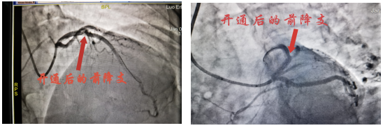 1月4日15:45左右,罗大爷再次出现胸痛,予以“硝酸甘油”舌下含服后无明显缓解,16:00复查心电图,考虑急性前壁ST段抬高型心肌梗塞超急性期,值班医生蔡波副主任医师查看患者后,建议立即行急诊冠状动脉造影及必要时支架植入术,尽早手术才能拯救更多的心肌,患者家属商议后同意并签署心导管诊疗同意书。