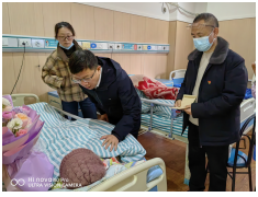 团拜活动结束后,潘华书记、杨林院长、胡林副院长还到养老院看望了生病住院的退休职工,给他们带去了院党委的关怀。