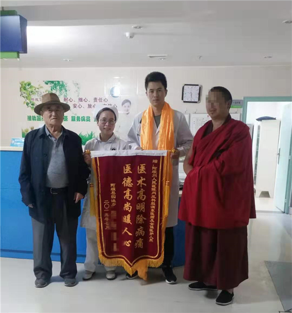 内三科:内三科患者在出院时感谢医护人员 献哈达、致感谢信