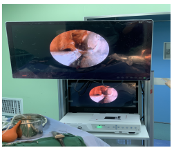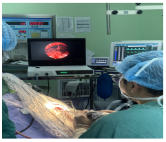 术中照片:(采用加速一体化康复治疗ERAS术中皮肤局麻+术后早期康复降低术后并发症,微创切口长约5-6厘米)