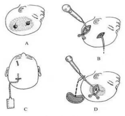 对于此病以往我科采用钻孔引流术: