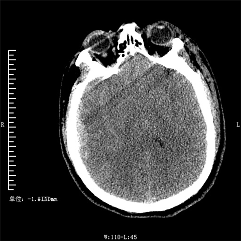 术前CT:脑组织弥漫肿胀/脑室明显狭窄/环池显示不清楚。