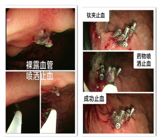 面对这一棘手情况,杨林医生凭借丰富的经验和精湛的技艺,首先采用去甲肾上腺素对出血点进行局部喷洒,以减缓出血速度。紧接着,他果断采用内镜钛夹技术,精准无误地将6枚钛夹一一夹闭在出血点上,瞬间止住了汹涌的鲜血。最后,为确保万无一失,杨林医生还对出血点进行了再次的药物喷洒治疗,术后检查确认无渗血现象,一场生死较量以胜利告终。