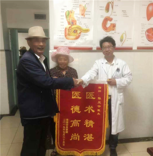 外二科患者痊愈出院,献上锦旗感谢医生的全力救治。