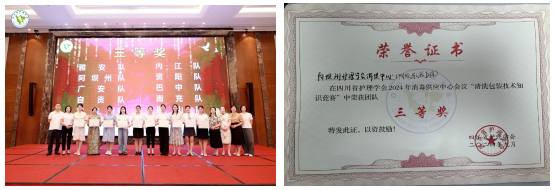 2024年9月14日,阿坝州人民医院消毒供应中心(以下简称“阿坝州消供中心”)在四川省护理学会消毒供应清洗包装技术知识竞赛中获得了团队三等奖。
