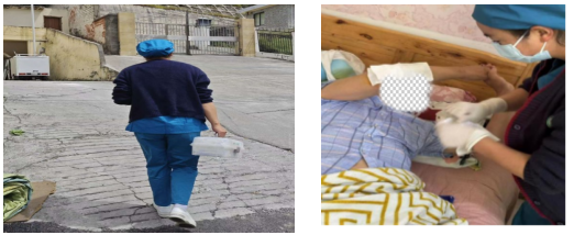 准备充分,细节至上。在详细了解了杨某某的病情后,急诊科护士长立即安排重症专科护士泽央斯基为患者进行上门换药。为了确保上门换药的顺利进行,根据家属描述患者的伤口情况,护士长指导护理人员准备适合患者伤口消毒制剂和相关医疗器械,并详细交代了注意事项。