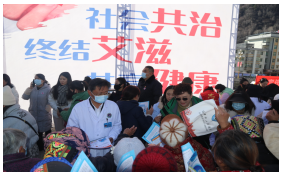 活动现场气氛热烈,工作人员激励广大群众积极参与艾滋病防治知识答题、认真阅读宣传折页内容、仔细听工作人员讲解、认真浏览图文并茂的纸质展板展架和宣传资料、积极了解艾滋病预防措施、传播途径、危害程度及道德法制等知识。此次活动发放各类宣传教育资料1200余份、印有宣传标语实物用品1300余份。