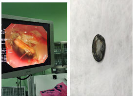 很快,小女孩被安排进了手术室。在麻醉科侯静主治医师熟练的操作下,小女孩很快进入了麻醉状态。随后,在杨林院长和耳鼻喉科陈茂强主治医师的紧密合作下,陈茂强主治医师使用硬性食道镜成功取出了已经腐蚀的纽扣电池。紧接着,杨林主任医师再使用胃镜仔细检查了小女孩的食道损伤情况,并指出患儿目前的食道损伤已经非常严重,如果电池没有及时取出,有可能会导致食道穿孔,进而引发更严重的后果,甚至危及生命。