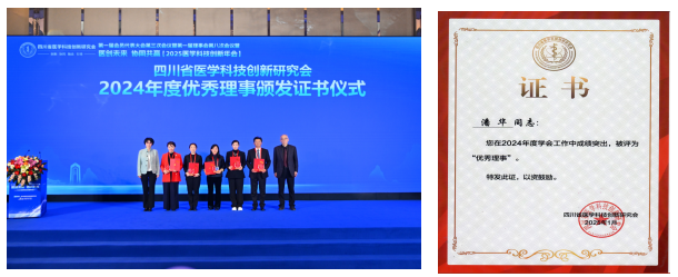 在表彰环节,阿坝州人民医院党委书记潘华同志荣获了四川省医学科技创新研究会第一届理事会仅6名的优秀理事称号。这一荣誉不仅是对潘华同志个人在医学科技创新领域贡献的肯定,更是对阿坝州人民医院在推动医学科技创新方面所取得成绩的认可。作为优秀理事的潘华同志表示将以此次荣誉为动力,继续引领阿坝州人民医院在医学科技创新的道路上不断前行,为提升地区医疗服务水平、促进人民健康福祉作出更大贡献。