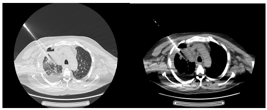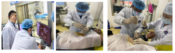 为确保手术的成功与安全,阿坝州人民医院运用多学科协作优势。外二科杜刚主任医师制定了详细的术中、术后并发症处理预案,为手术的成功提供了坚实的保障。放射科蒲鹏主任医师用经验和技术,为手术制定了精确的穿刺进针路线。在唐大东主任医师的精细操作下,整个穿刺过程仅用了约30分钟便顺利完成,且患者未出现明显的出血、气胸等并发症。