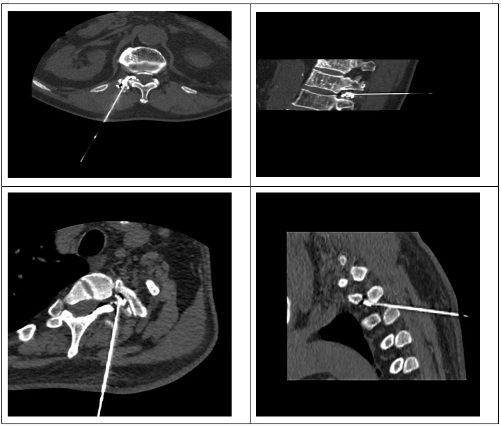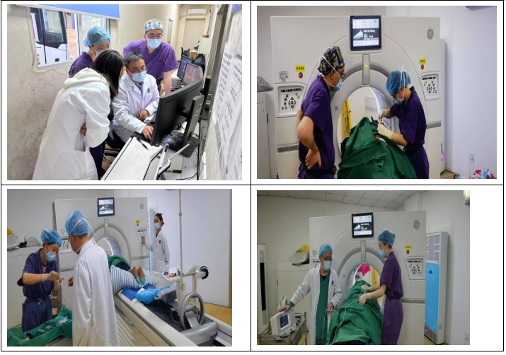 精准微创技术,直击疼痛根源。面对两位患者的病情,我院麻醉疼痛科、康复科、放射科迅速展开会诊,经详细评估后,决定采用CT引导下脊神经根脉冲射频调节联合神经根阻滞术为其治疗。放射科蒲鹏主任医师、泽旺初技师团队基于128排螺旋螺旋CT搭载的高分辨率动态三维成像技术,凭借毫米级精度构建穿刺通道三维模型,实现病灶靶区的立体导航定位规划最优穿刺路径,为临床制定个体化精准诊疗方案提供可视化决策支持,就像给医生装上了“透视眼”,确保治疗操作准确无误。在此基础上,通过脉冲射频调节,可有效调节神经功能,降低神经的敏感性;神经根阻滞术则能直接阻断疼痛信号的传导,双管齐下,从根源上解决疼痛问题。